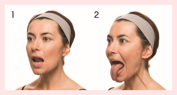입을 크게 벌려 혀가 턱끝에 닿도록