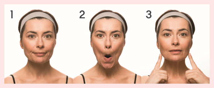 뺨 하부 근육의 탄력을 강화시키는 동작으로,